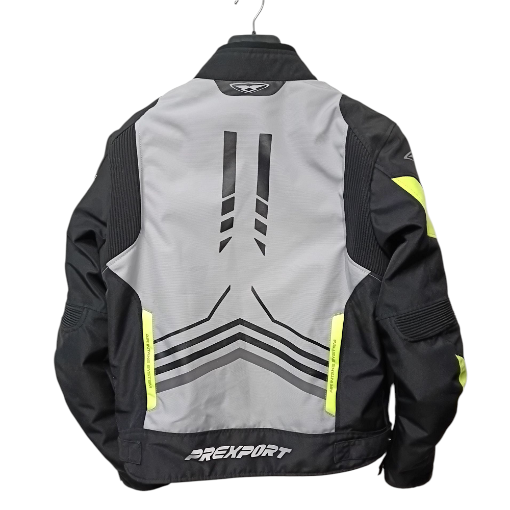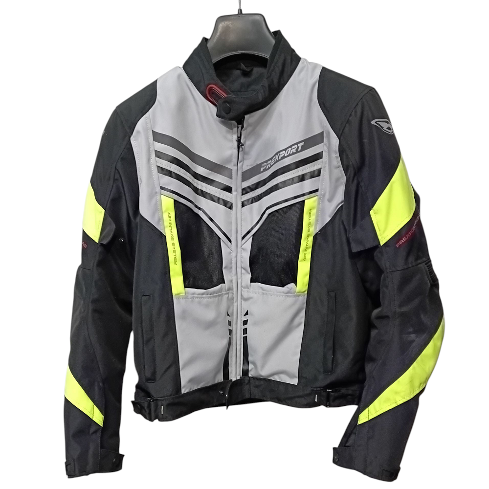 Giacca Prexport Predator Tg. 3XL grigia e giallo fluo, imbottitura e membrana unita removibile, protezioni su spalle e gomiti, prese d’aria, usata in ottime condizioni