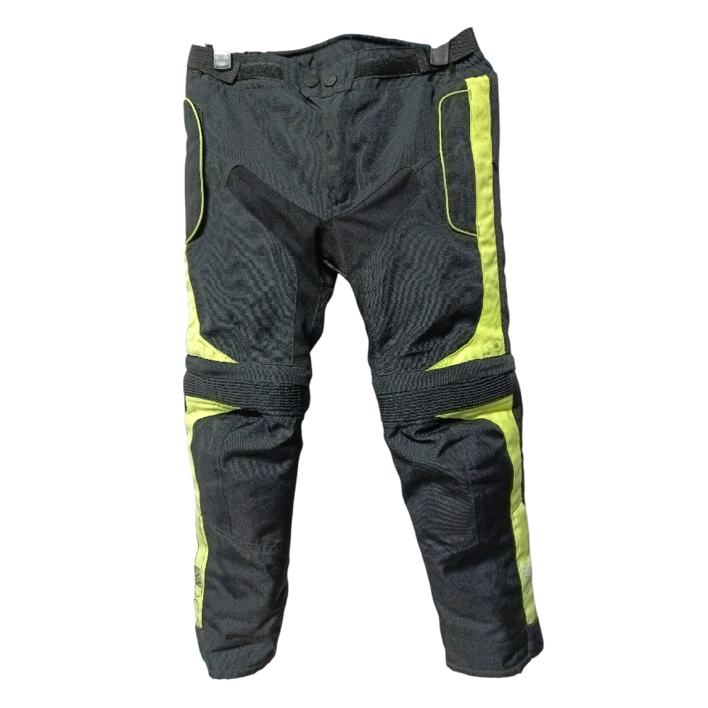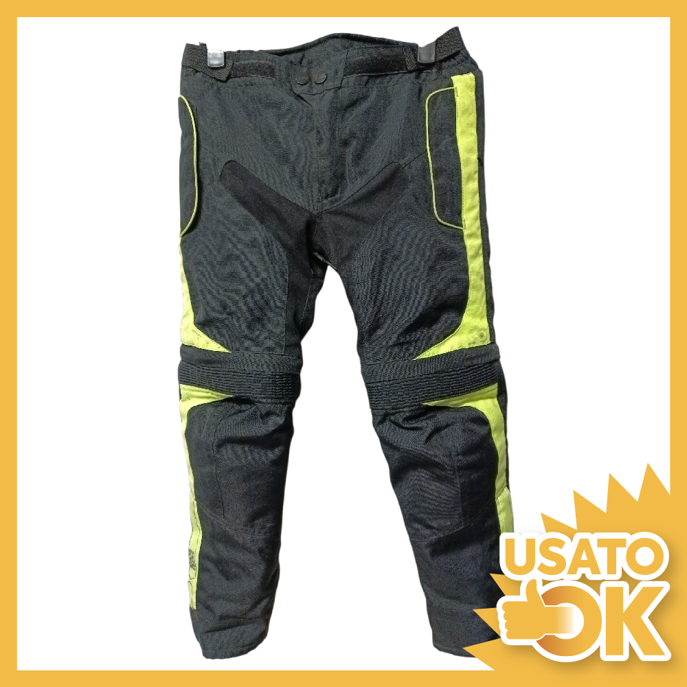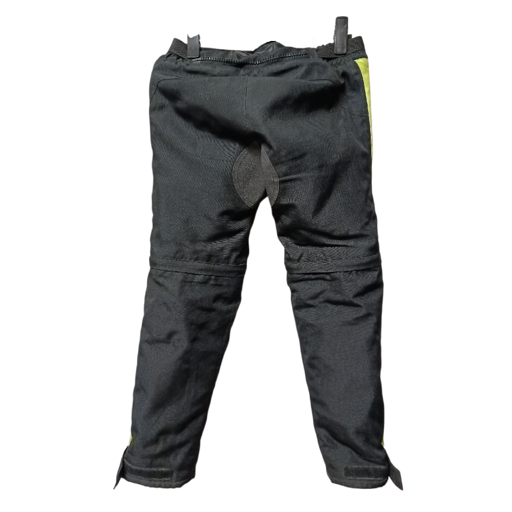 Pantaloni bambino IXS Tour gambe allungabili Tg. 134/140 cm neri e giallo fluo, protezioni sulle ginocchia, imbottitura removibile, usati in buone condizioni