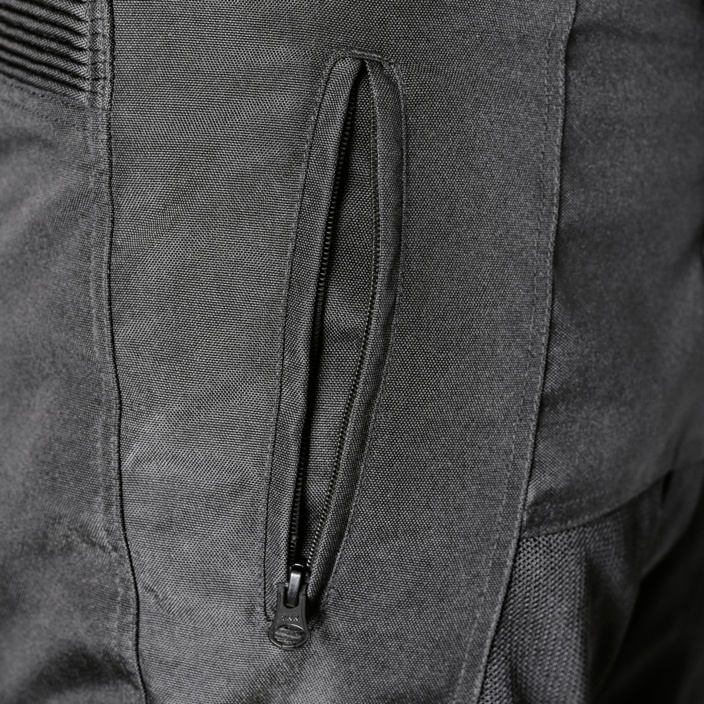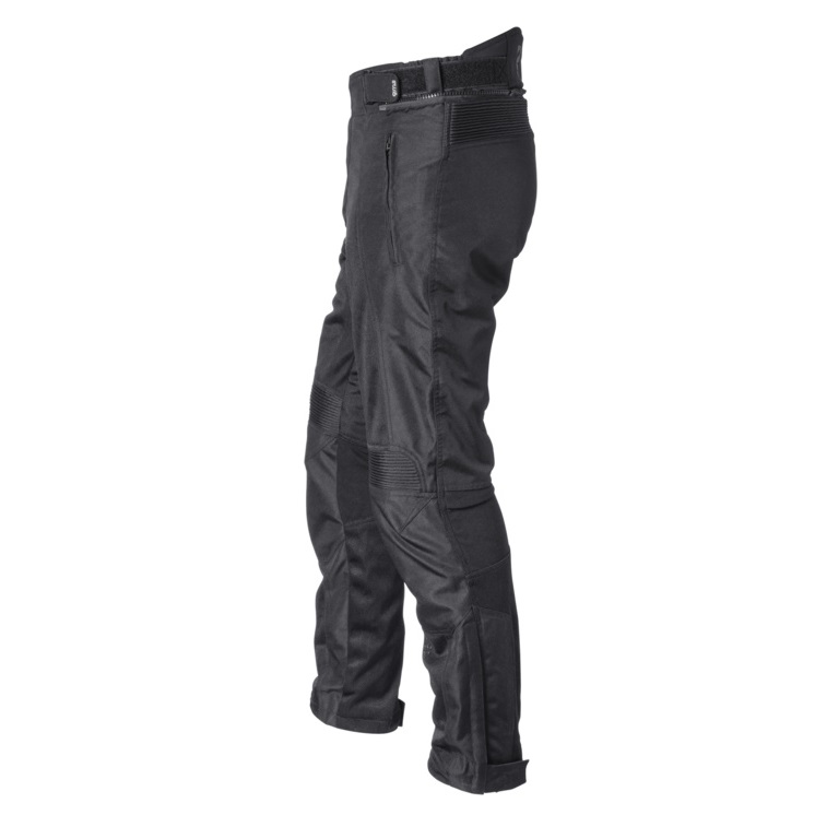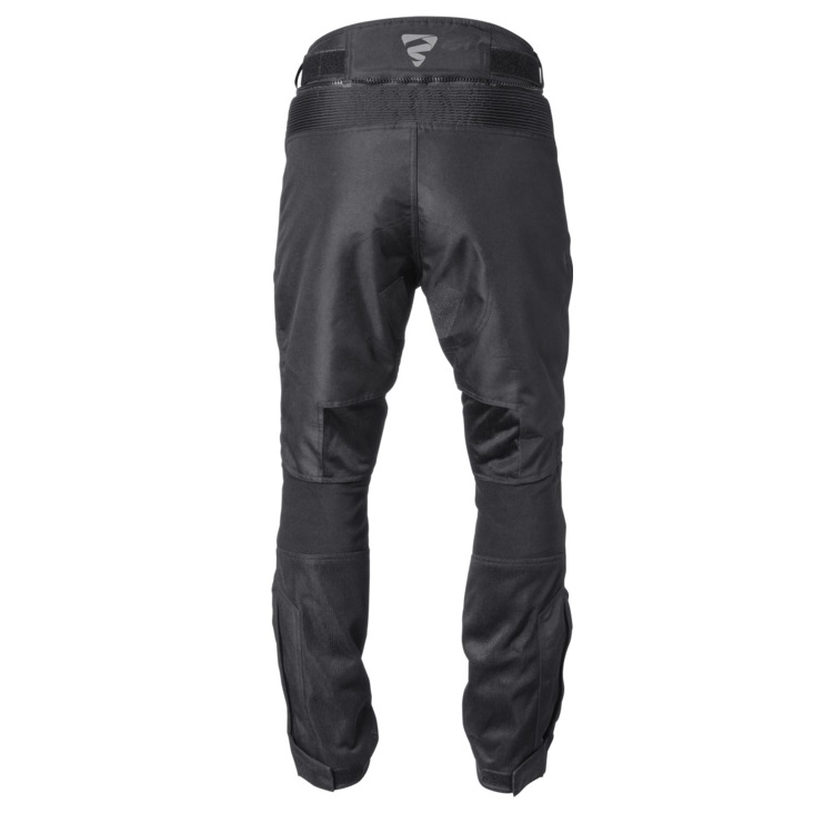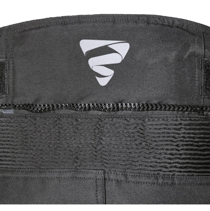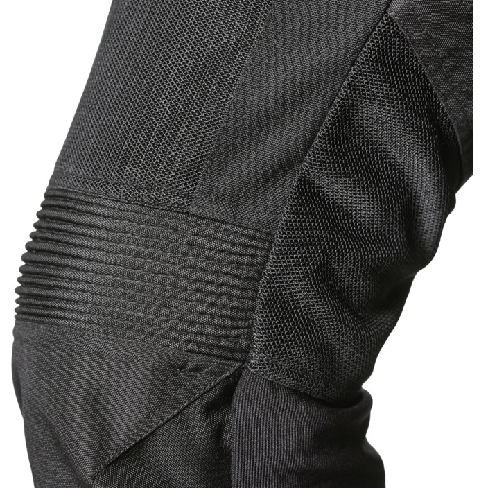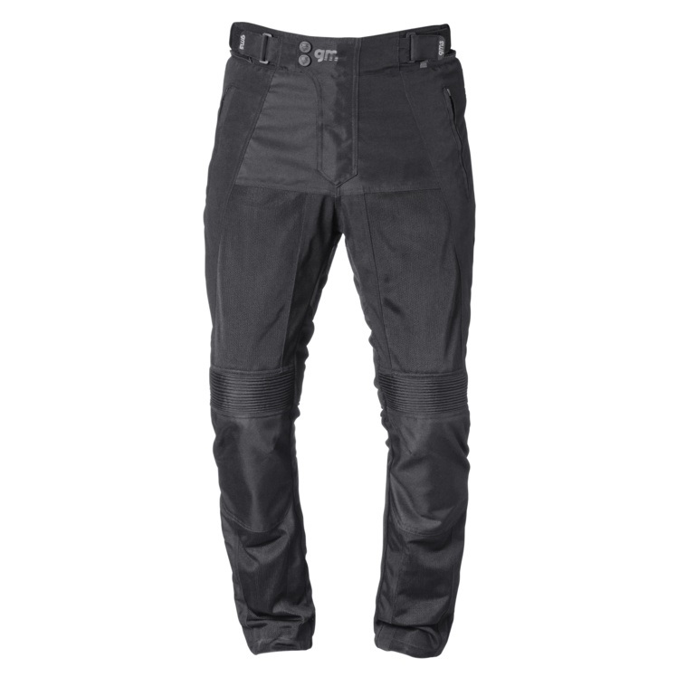 Pantaloni traforati Gms Fiftysix.7 omologati CE neri, protezioni sulle ginocchia regolabili in altezza, tasche per protezione alle anche, pieghe elastiche al ginocchio e nella parte bassa della schiena, Germadura 600D
